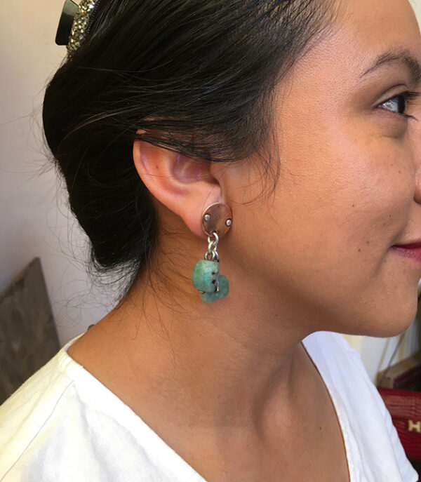 Jewels designed the chic sterling wrap. The tops are riveted copper over sterling for pierced ears.
