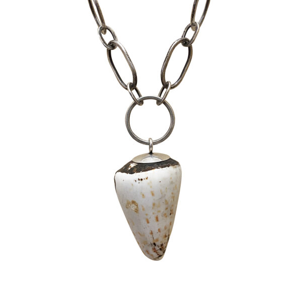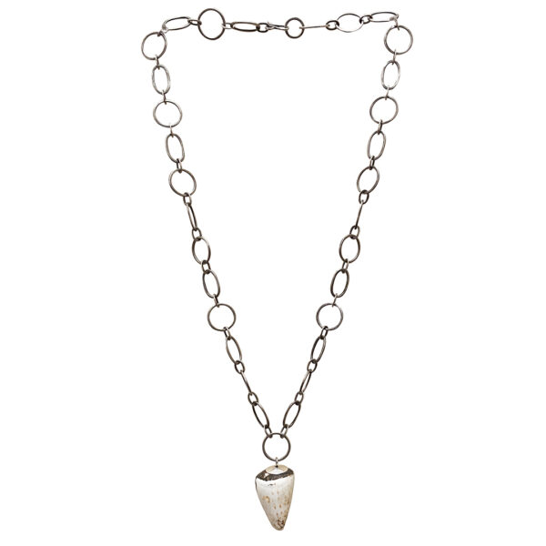 We capped the shell and made the chain with hand wrought sterling for a chic long necklace. It’s seasonless, simple and cool