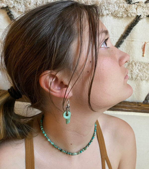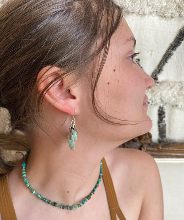 A beautiful mix of watery green amazonite beads of a rare shape linked with our finest hand woven rondelles and sterling links .
