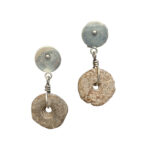 Our silversmith made the beautiful hand wrought sterling wraps and tops. This pair is shown with clip tops. Should you prefer hooks or posts please make note at checkout. We’ll happily make the change for you.