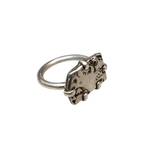 A fabulous ancient coin we pronged on a bed of sterling. Sounds edible.