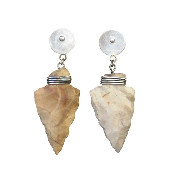 Stone arrowheads turned jewelry, a natural and more peaceful use of the tool. We wrapped them steering wire. The tops are comfortable clips.