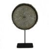 An aluminum crown with fine stamped worked, discs encircling the plate and wool fibers.
