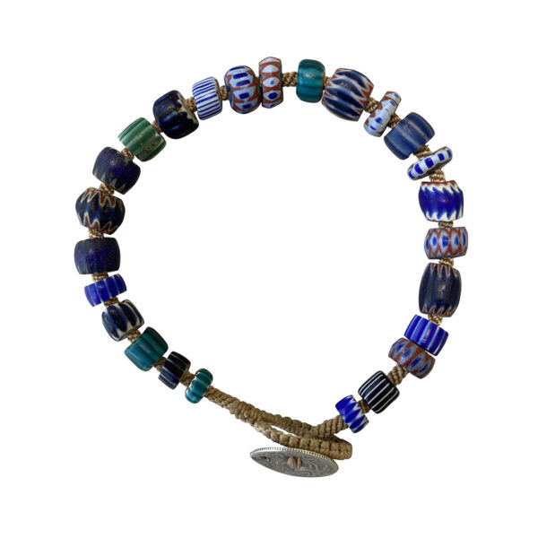 The Chevron beads were first made by the Venetians in the 16th century and primarily exported to Africa where they are still very desirable. This particular group is sublime; each distinct, restrained, rare and elegant. We have woven cord between the beads. This is for a larger wrist.