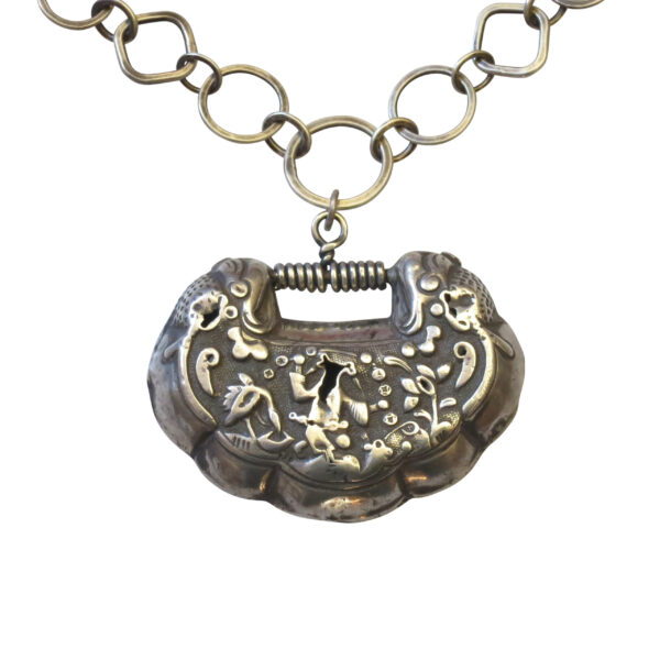 We wrapped sterling on the lock bar and attached to our hand hammered sterling chain, also quite killer!