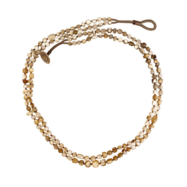 We thought we’d nevery get anymore of these fabulous beads. It’s a gift with every find. This double strand short necklace is chic and elegant on it’s own and killer with a shorter single strand.