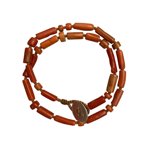A very lovely double wrap bracelet with our finest hand woven cord between each delicate bead. This piece can also be worn as a choker.