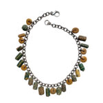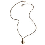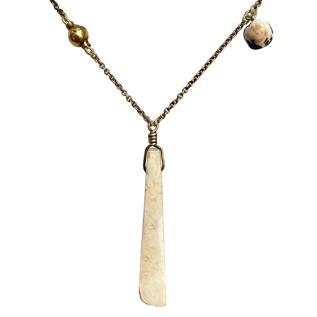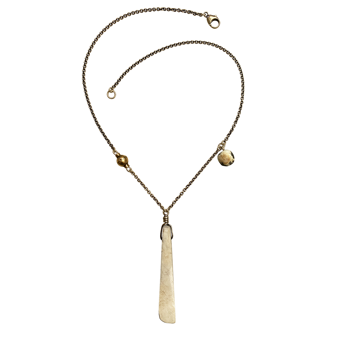 An ancient shell ornament hangs center, probably Pre-Columbian, Mexico, Central America or Peru, and on one side is a Berber (Amazigh) gold bead and the other is an old shell bead. The chain, of course is sterling.