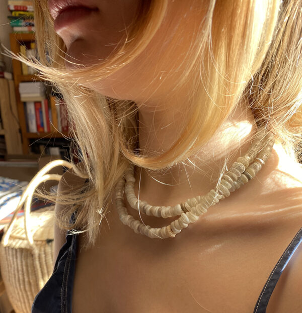 A note about our woven cords. We weave these by hand, every one of them. Like all Jewels’ work no two are exact, as each of us. The work is labor intensive. When warmed to the skin the cord becomes more supple, conforms to the wearer, hangs at it should; the necklace transforms more than just a necklace. It becomes her or him.