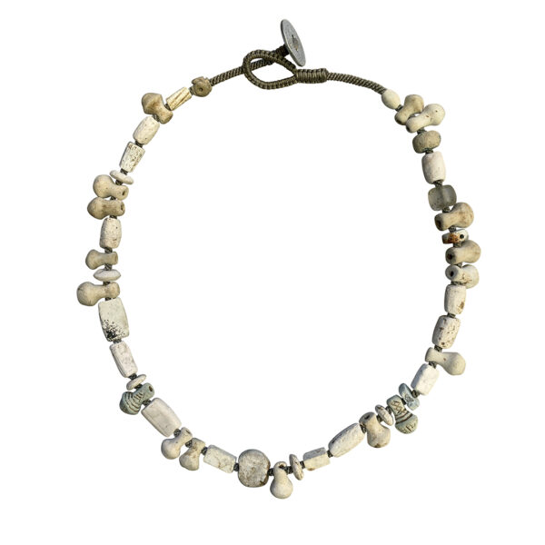 A monochrome collection of ancient Egyptian beads elevated by our hand woven cord between each. Notice the details, true to form for Jewels. Organic, elegant, chic and cool.