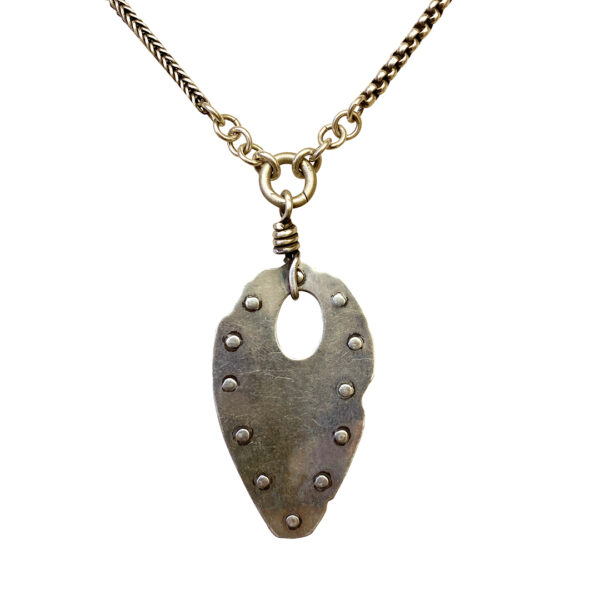 We restored the copper amulet with riveted sterling sheet and hand pieced sterling chain, a favorite Jewels’ design.
