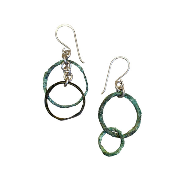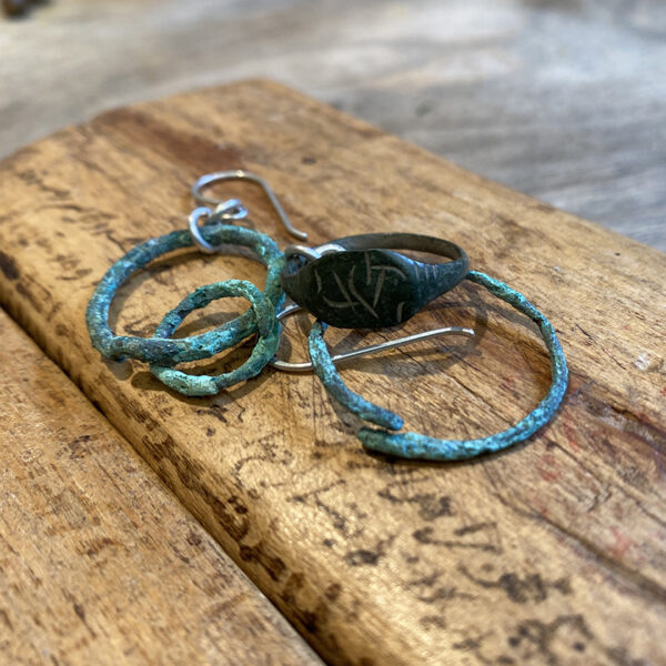 It’s the color, that verdigris. These are Roman or Viking or Bactrian. Ancient. One of the rings is an actual ring with an “inscription”.