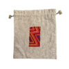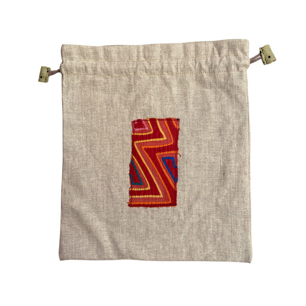 The gorgeous Mola (Ethnic Panamanian textile) fragment is from an old traditional shirt. We strive for no waste, especially of beautiful things! We made the pouch with French linen on the outside and a green polkadot cotton inside. We use these for our JEWELS, as you might want to have a few a as well.