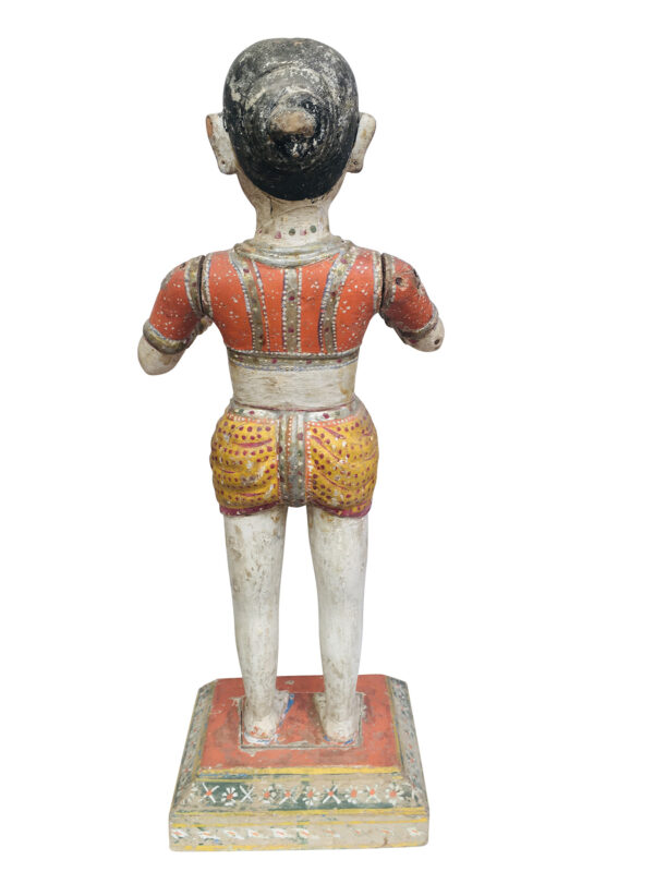 A beautiful painted wood doll for the Gangaur festival, a celebration of women, spring, harvest and fertility. There is the expected wear, chipping and cracks.