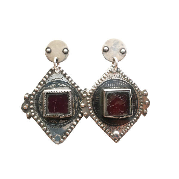 From a miraculously acquired collection this pair of earrings is pure traditional Morocco. The red glass is seen as protection from the evil eye.