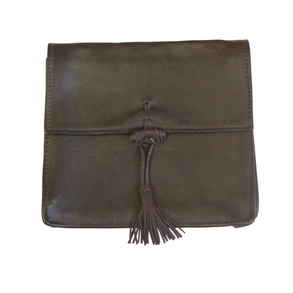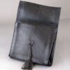 This great pouch was designed by Jewels for easy travel. It is the softest leather, black with brown tassels.