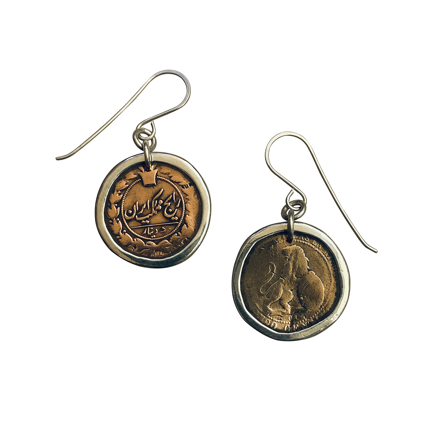 One coin is Islamic and the other possibly Spanish. With the silver bezel they glow. We also made the sterling hooks.