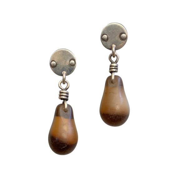 These wonderful beads were made in Europe specifically for the Mali market. This color is deliciously cappuccino. Or is milk and dark chocolate. We make the sterling post tops and wrap.