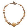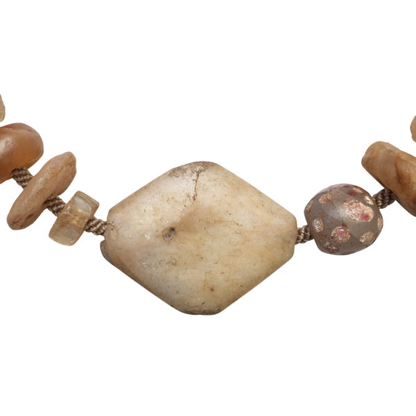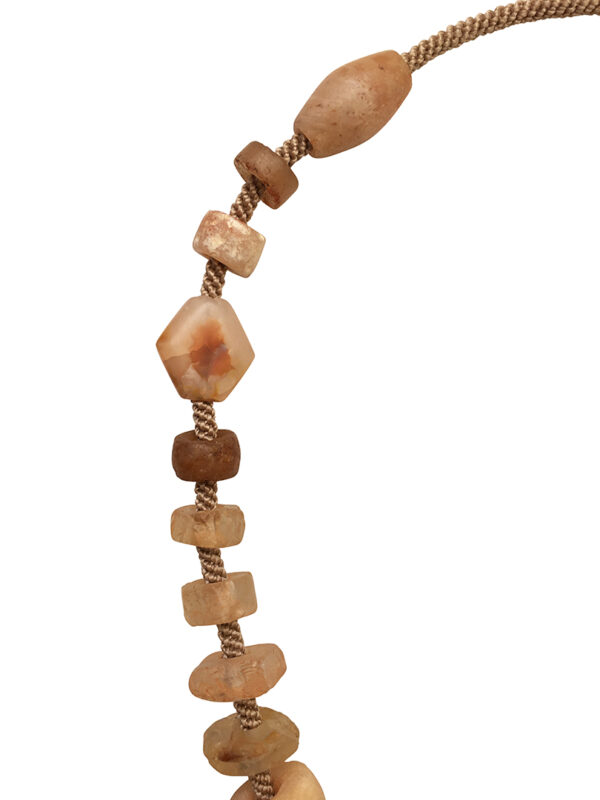 Jewels: “This to me is a miracle piece, a perfect little choker comes into being from disparate beads found in the studio, handsome”. Most of the beads are agate. There’s a subtle glass polka dot bead and some rock crystal.