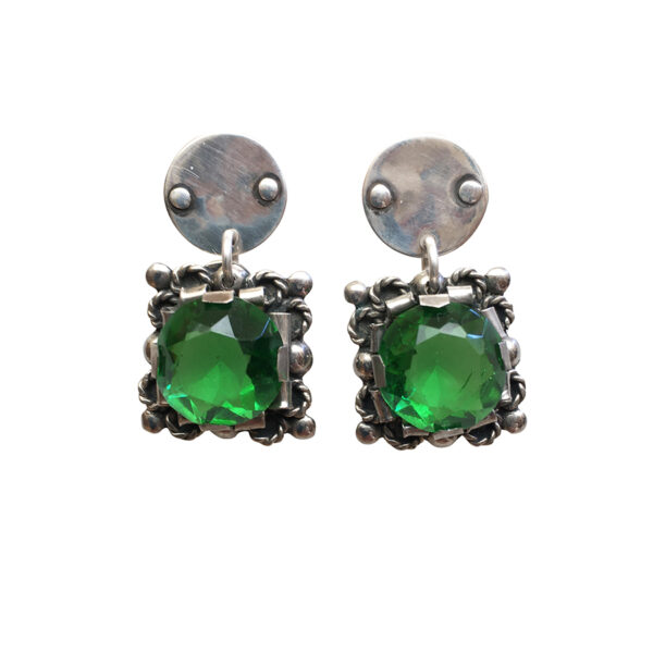 Feel like princess just for fun. As always the Mexican material is fine sterling work and perfect cut glass. You might mistake it for true emerald. The tops are our signature sterling discs.