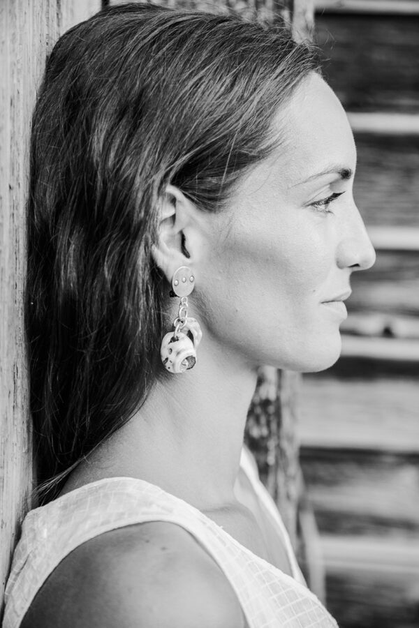 Earrings shown on Annamaria have larger shells but the style is similar.