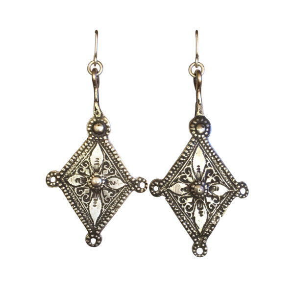 A beautiful pair of charms with great patina. They were hand stamped with a central ornate flower, one could say, that they may have a Spanish influence.