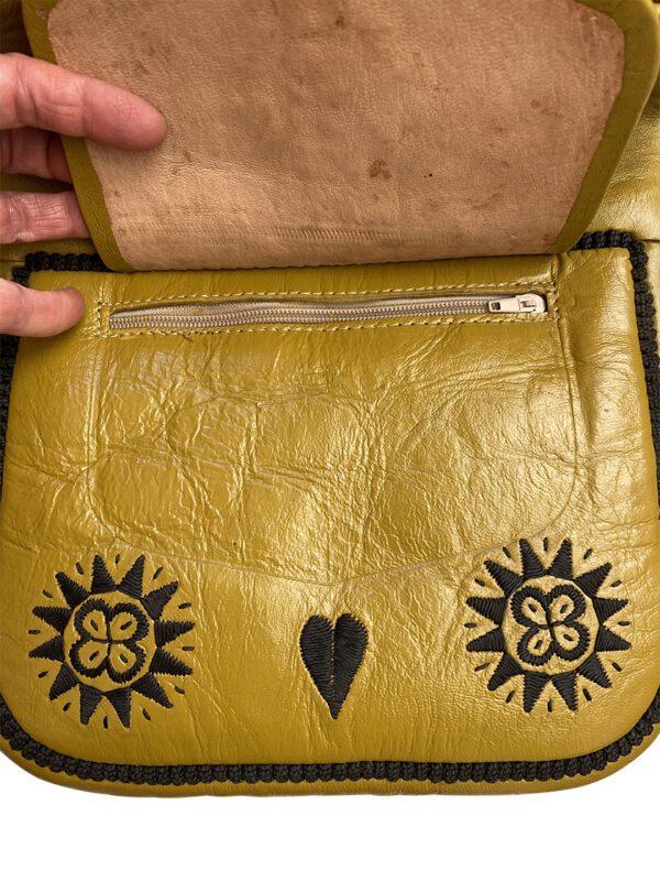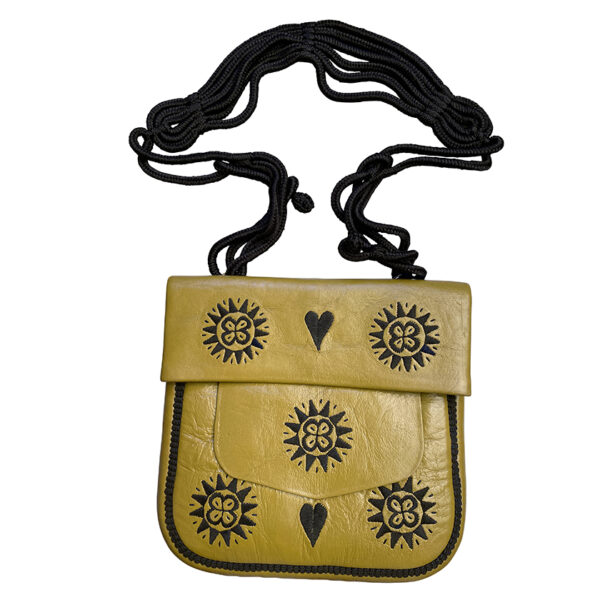 These purses, with the beautiful rope strap and embroidery, are very traditional artisan leather work in Marrakech. It is becoming a dying tradition as there are now only a couple of people making them where once Jewels knew many.