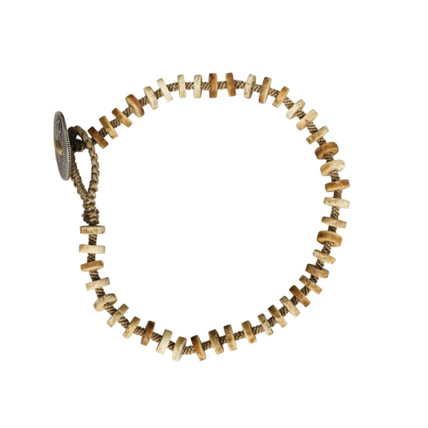 Very chic, light and easy to wear ancient African ostrich shell beads.  Notice our fine hand woven cord between each bead.