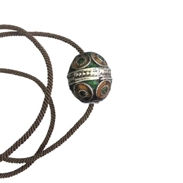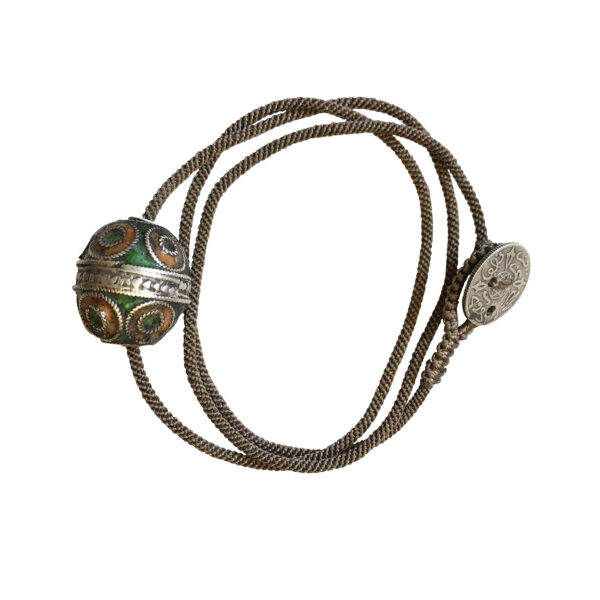 A beautiful and delicate example of the superb work of the Tiznit. The bracelet, simple yes, but not simplistic as our cord is our finest handwoven cord, a labor intensive work, to be wrapped three times. This piece is for a smaller wrist size