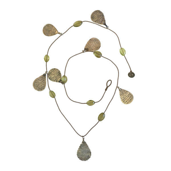 Silver charms with poetry and prayers inscribed on both sides and rare citrine French trade glass on our finest hand woven cord we do in our Marrakech studio.