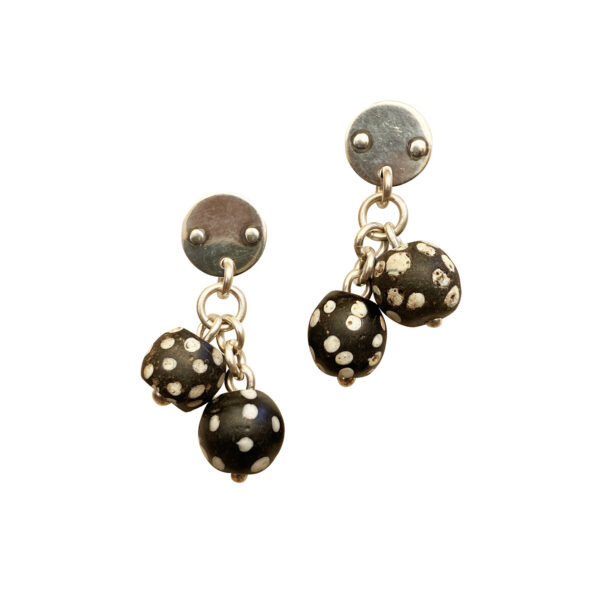 19th century European made glass beads of perfect polkadots and subtle colors. We made the sterling tops and links
