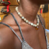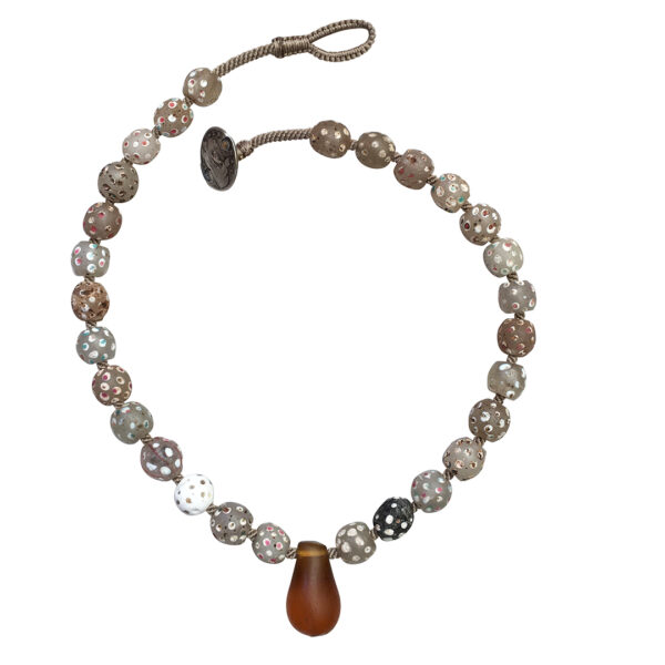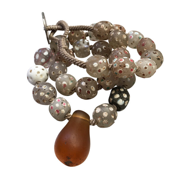 18th century Italian made polka dot beads adored and traded in Africa and a 19th- early 20th century central whiskey colored glass bead from Mali.