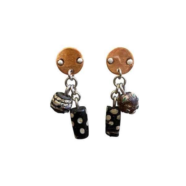 18th & 19th century European made glass beads of perfect polkadots and subtle colors. We made the copper over sterling post tops and links.