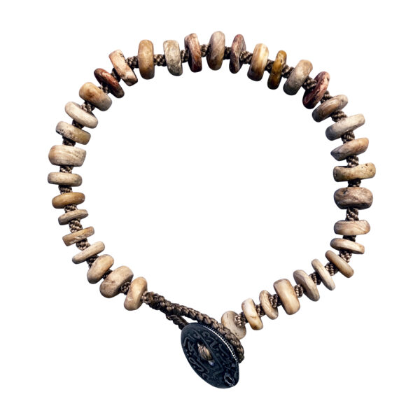 Very chic, light and easy to wear earthy Pre Colomian shell beads. Notice our fine hand woven cord between each bead.