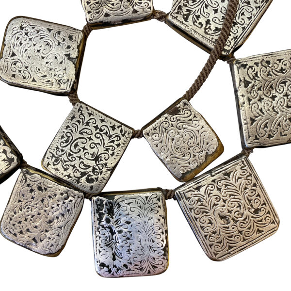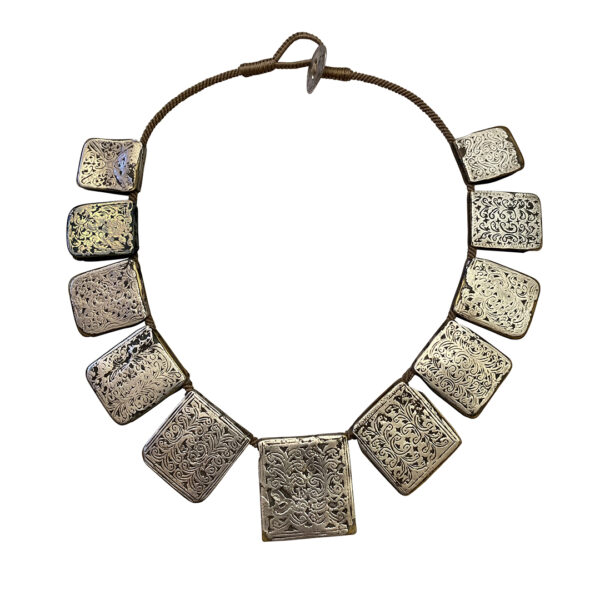 The Berber people of North Africa would seal prayers or poems in these beautifully decorated silver and brass boxes and wear them for protection- and beauty of course.  Jewels designed this piece as radiant protection on our hand woven cord.  In fact, it’s pretty magical that she was able to find this group of charm boxes.
