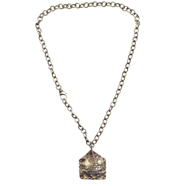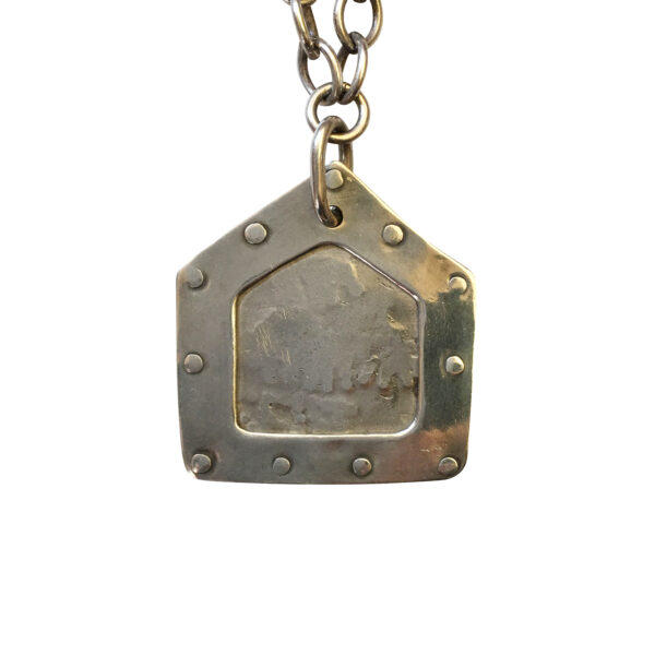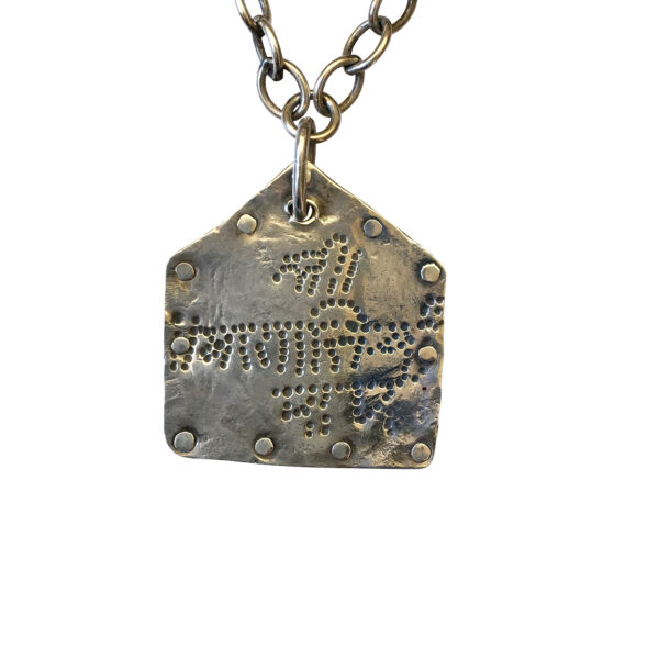 An elegant and beautiful amulet for contemplative thought and comfort with that wonderful esoteric way of true folk art. The inscription is a philosophical expression for “right behavior”. The chain is Italian made sterling.
