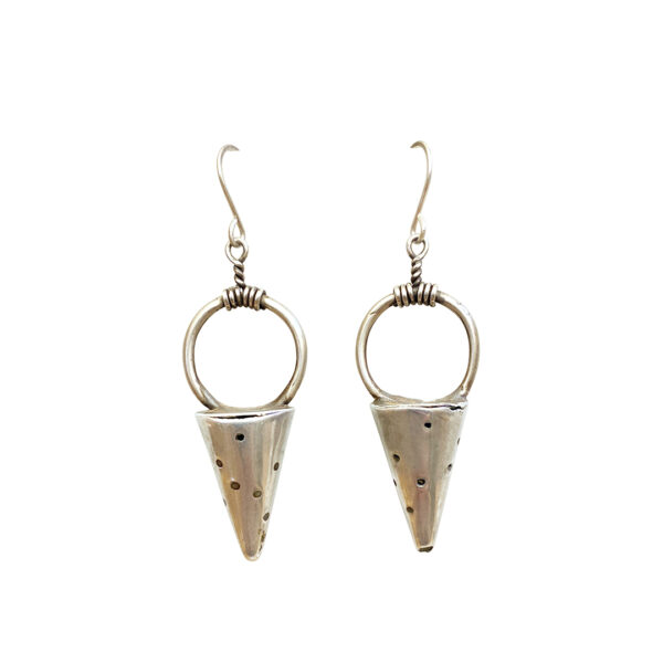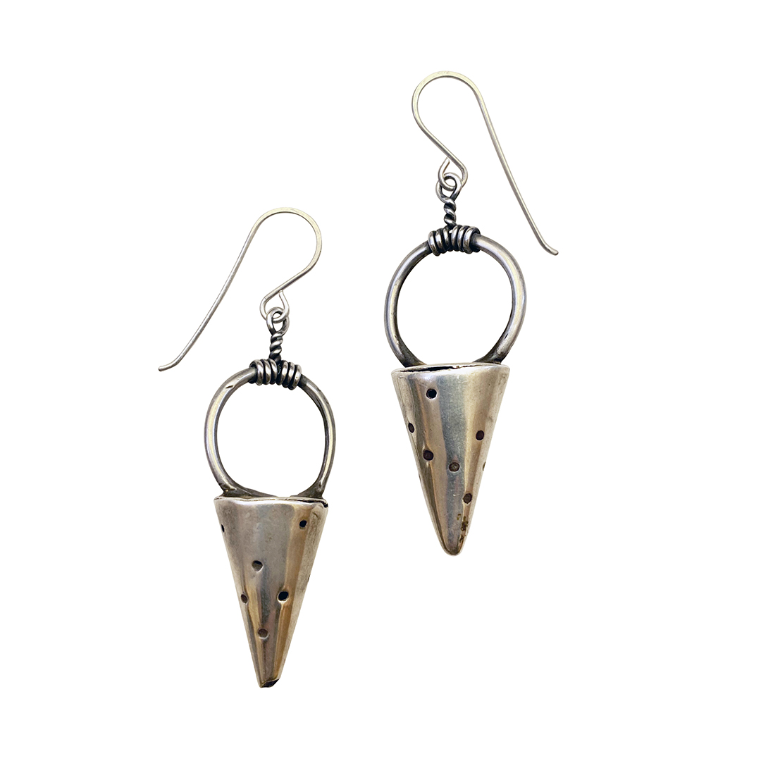 One could imagine how gorgeous she was wearing many of these silver charms around her head.  They are just a little quieter in our environs as earrings.  We made the hand wrought sterling hooks.