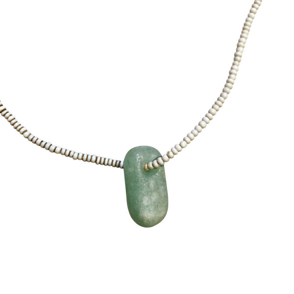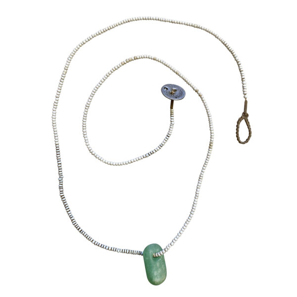 This European made bead is a more unusual type.  It looks like sea glass and is that wonderful color of sea foam, close to the color of jadite glass.  The white glass beads, traded all over the world, are pure beauty.  This is a perfect summer necklace.