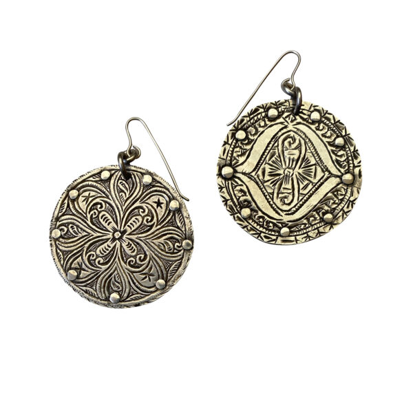 Amazigh (Berber) hand etched fabulous charms. Jewels matches these in size so each is unique, all perfect. Both of these have a high silver content stamp on the back and one of them has scant remains of gold wash.