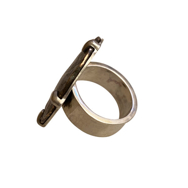 Our silversmith made the bed and wide band ring with sterling sheet, strong and chic.