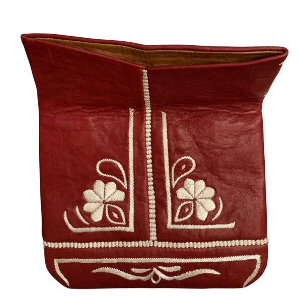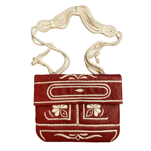 These purses, with the beautiful rope strap and embroidery, are very traditional artisan leather work in Marrakech. It is becoming a dying tradition as there are now only a couple of people making them where once Jewels knew many.