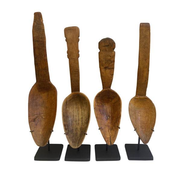 A collection of very beautiful, sculptural spoons from the Saharan regions of Morocco. We custom made the stands.