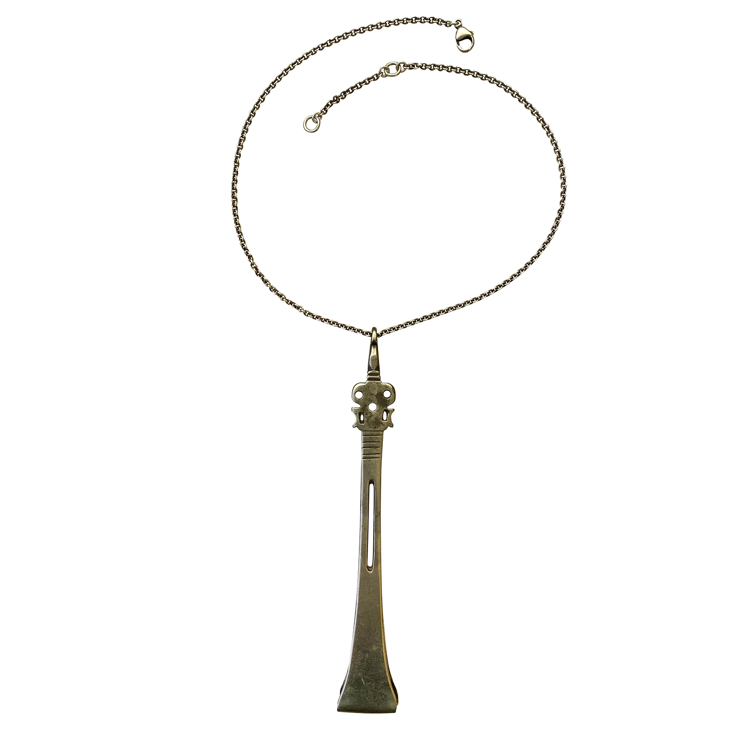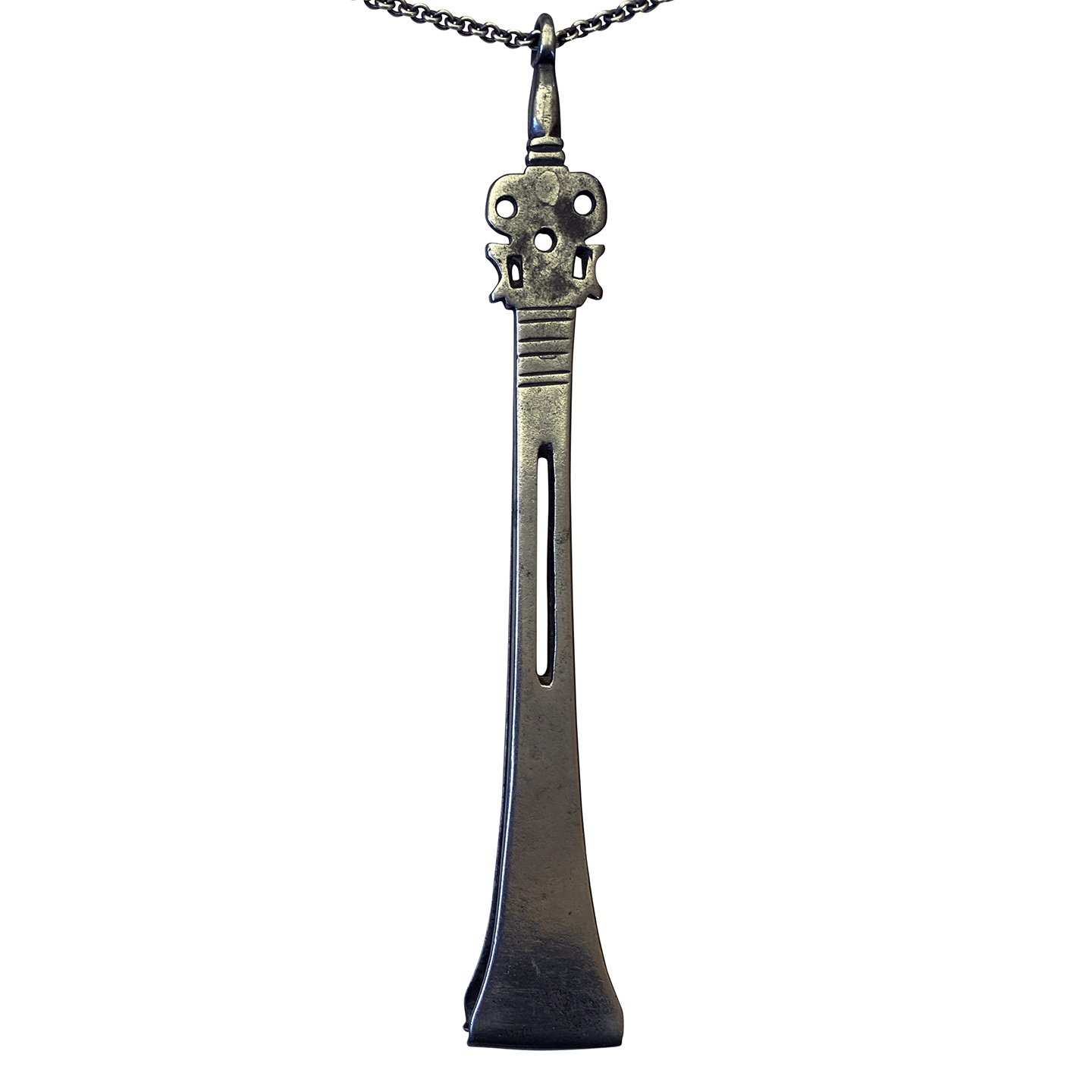 The Tibetans are known for their fine iron work, a notoriously difficult material.  This tool is simple and elegant in form and lovely hand worked designs.  The chain, of course, is sterling.