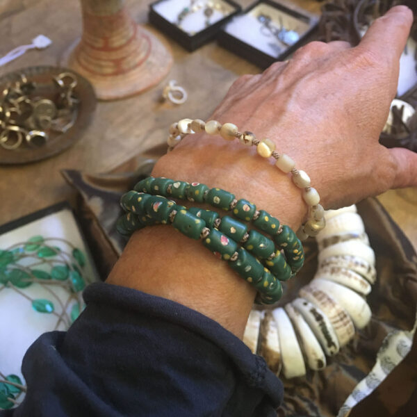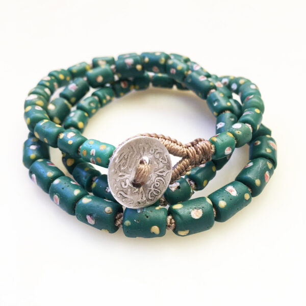 African trade beads made in Italy Jewels brought to life on our fine hand woven cord. Notice how gorgeous it is, woven between each bead. This is for a smaller wrist.