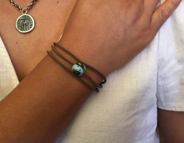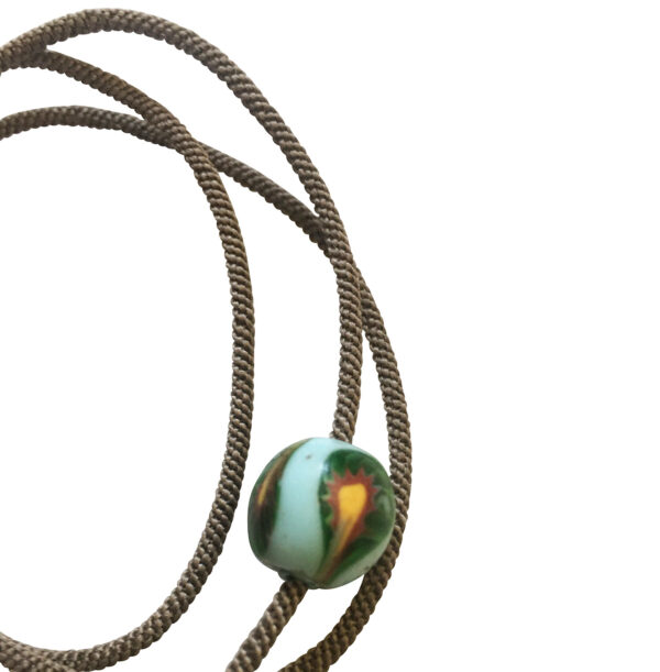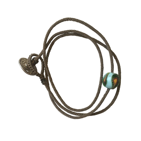 This beauty glows and has eyes of watery paisley. Jewels always find these in Tiznet, on the deserts edge. The subtle beauty is also in our finest hand woven cord that wraps around 3 times.