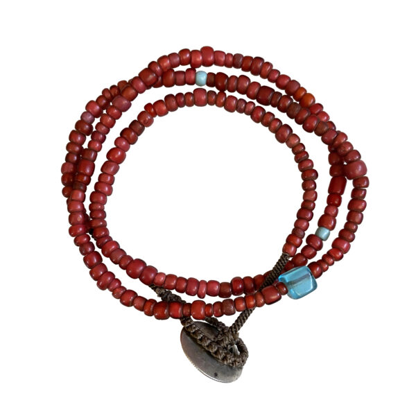 A triple strand for a small wrist or a simple hippie chic necklace. These tiny beads glow like pomegranate seeds and are almost as delicious.