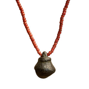 Old Bronze Bell And Red Glass Beads